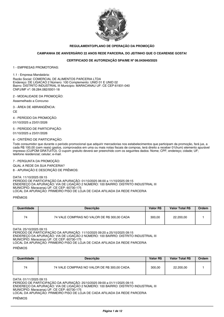 CAMPANHA DE 22 ANOS DA REDE PARCERIA – REGULAMENTO